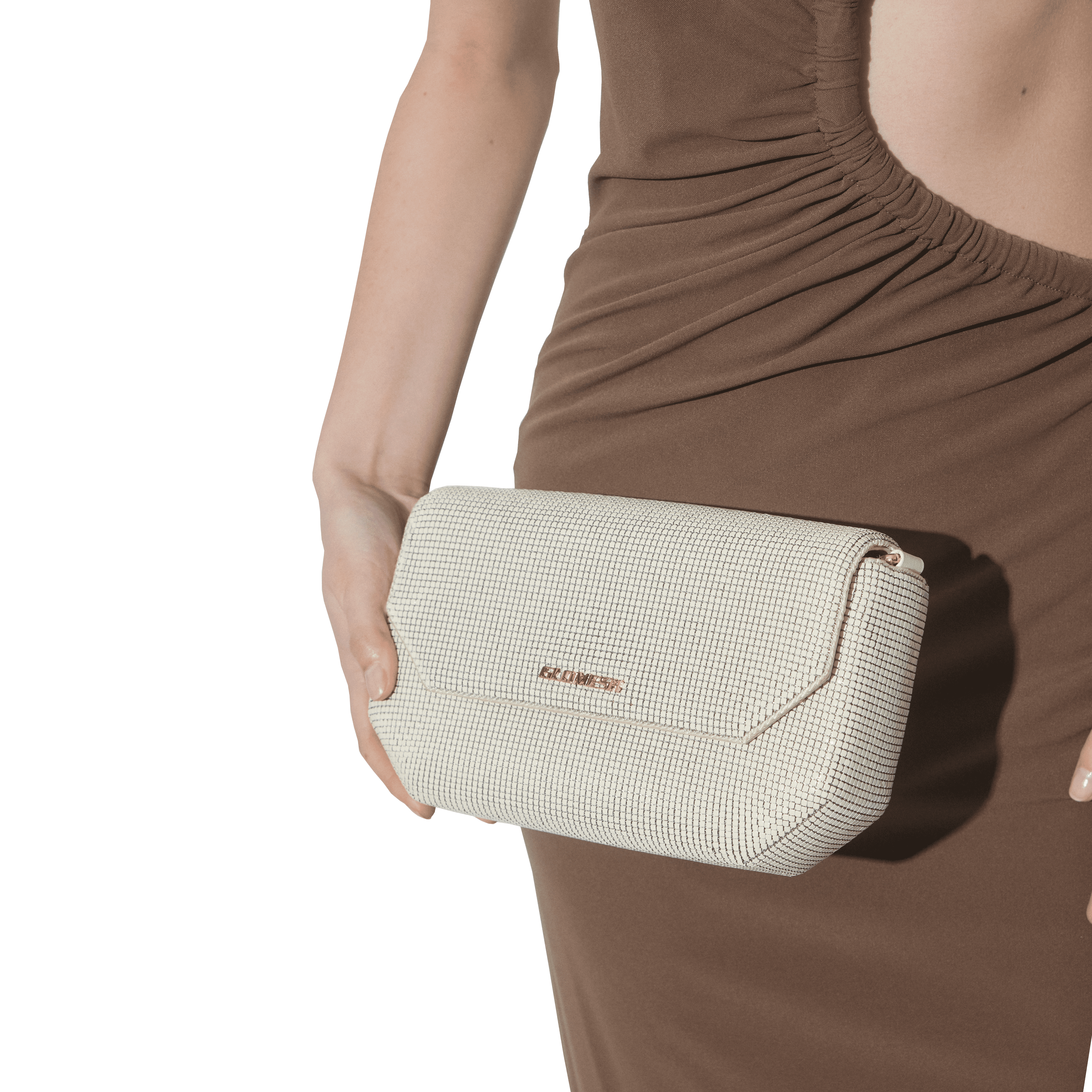 Glomesh MIVON Whisper White Satchel, Clutch, Cross Body