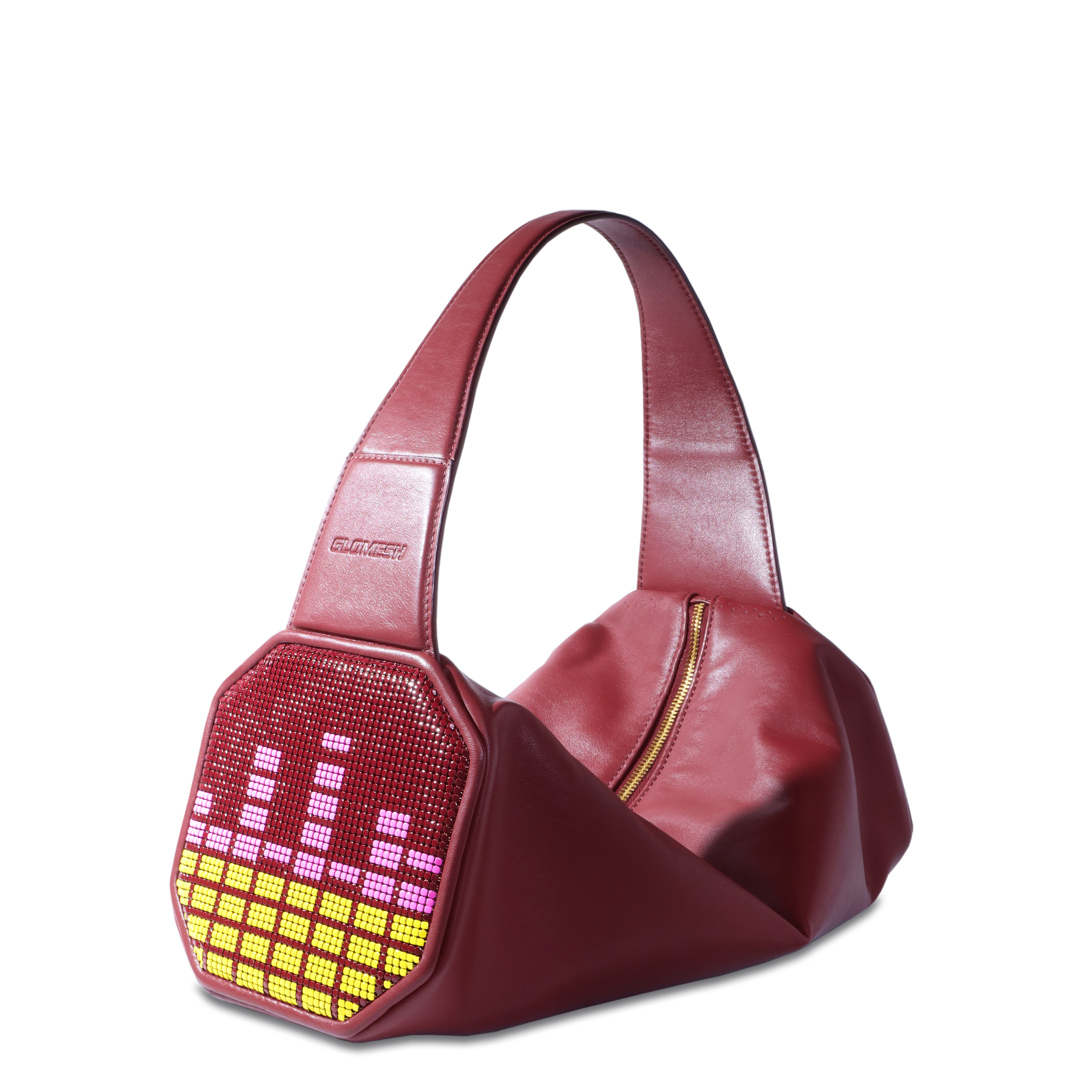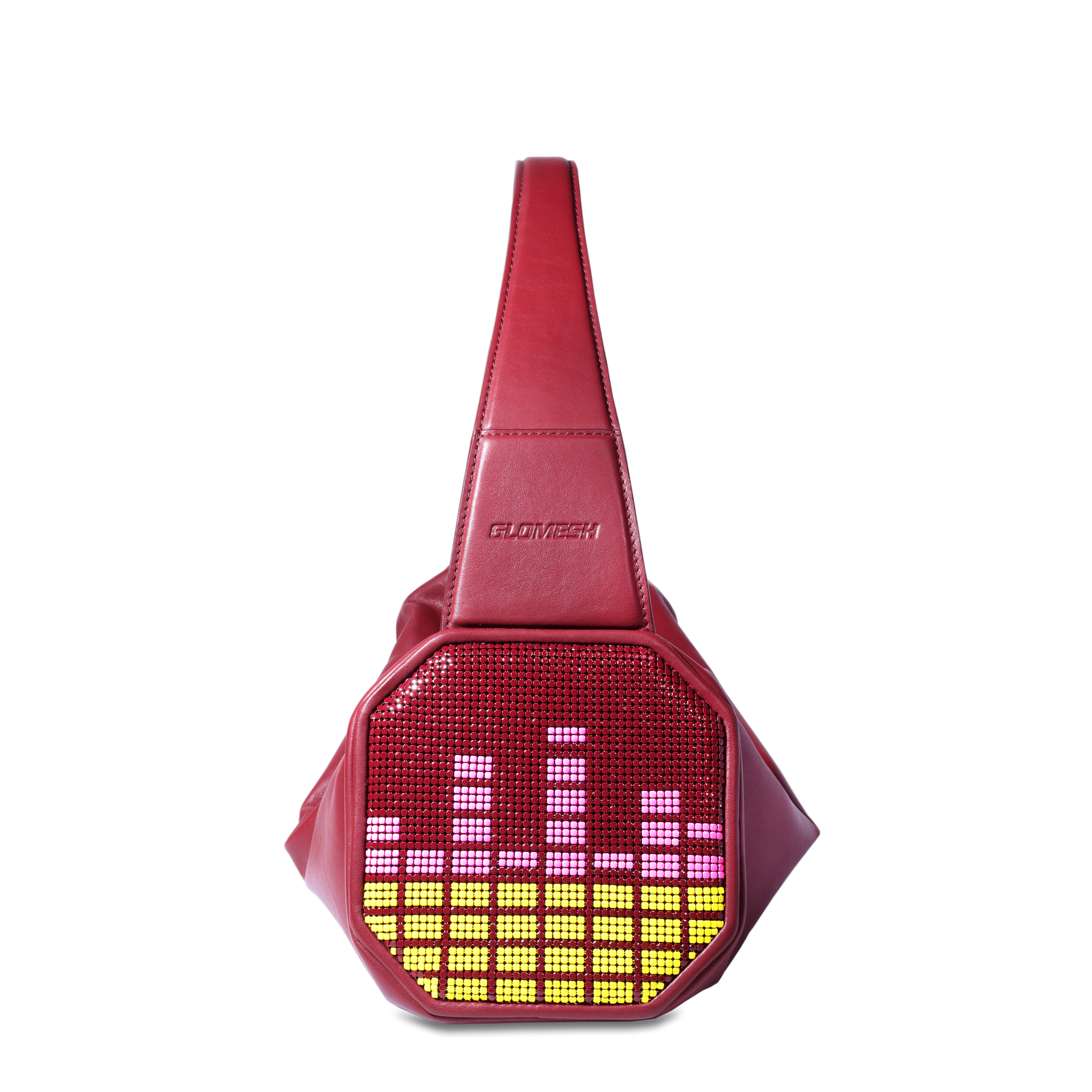 - Embellished with Glomesh's trademark pure brass mesh.
