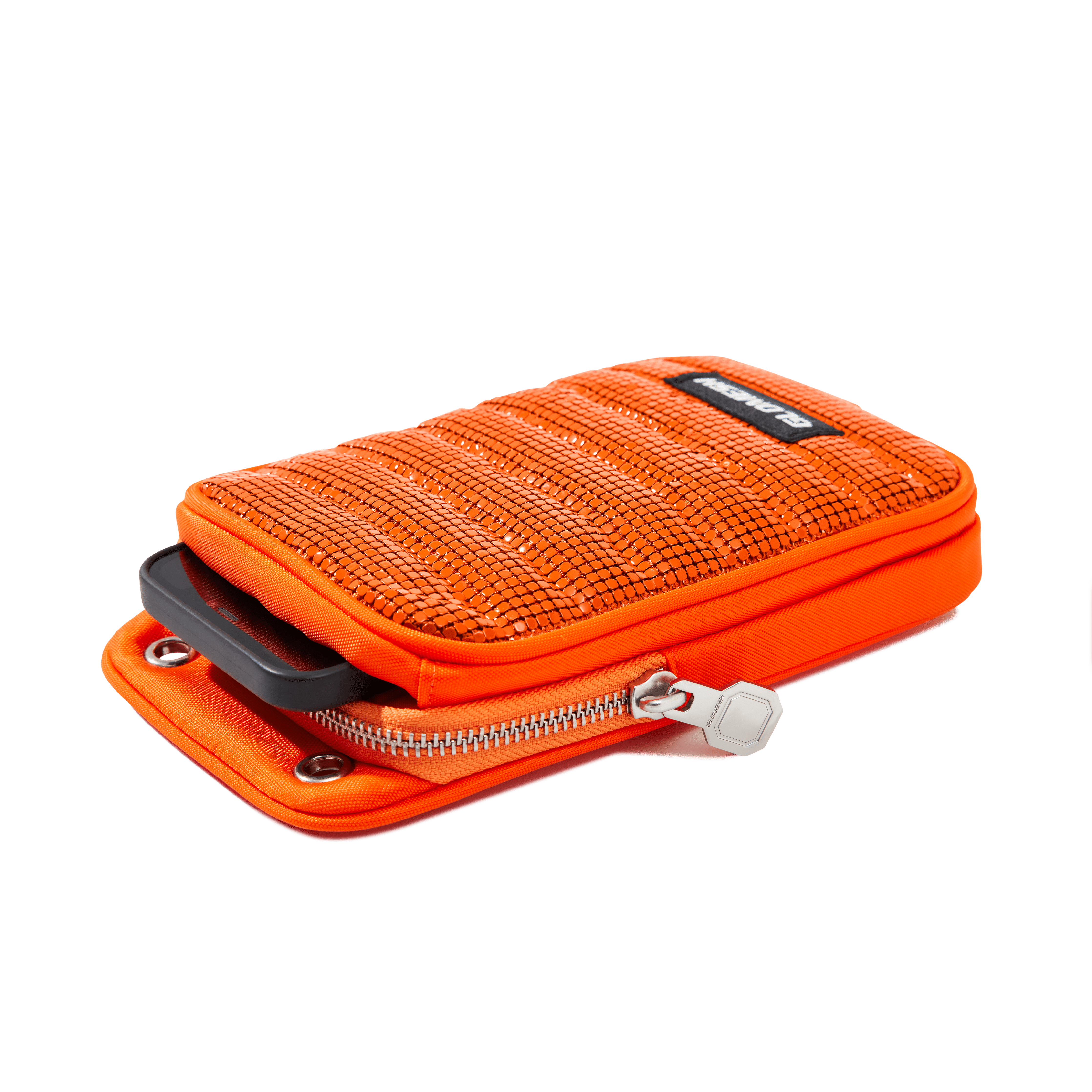 The Glomesh Glider crossbody has a zip pouch storage for all your small everyday necessities, fused with our easy access padded front sleeve for your phone to effortlessly glide in and out of.