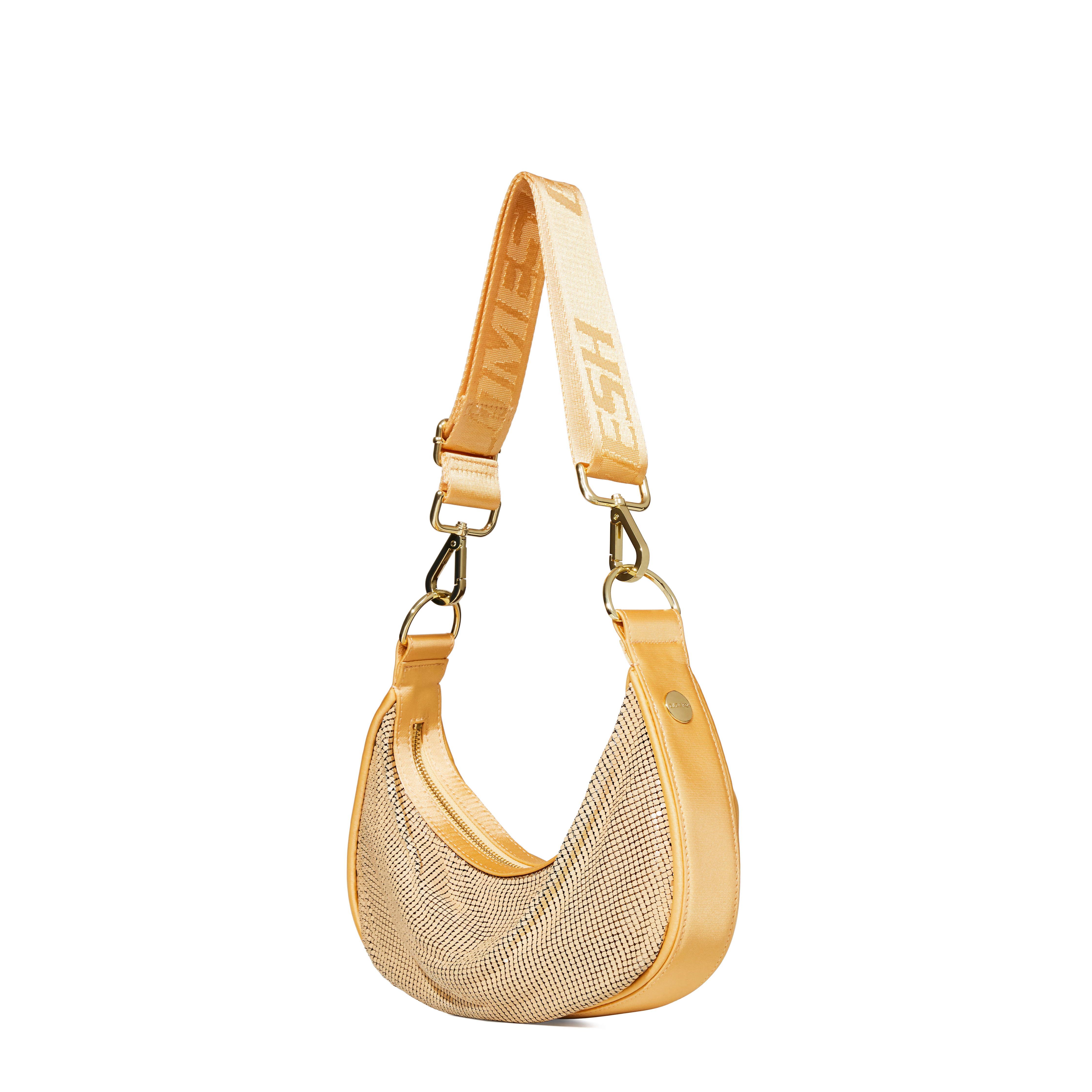 - Elegant Glomesh gold or silver plated zipper puller & hardware