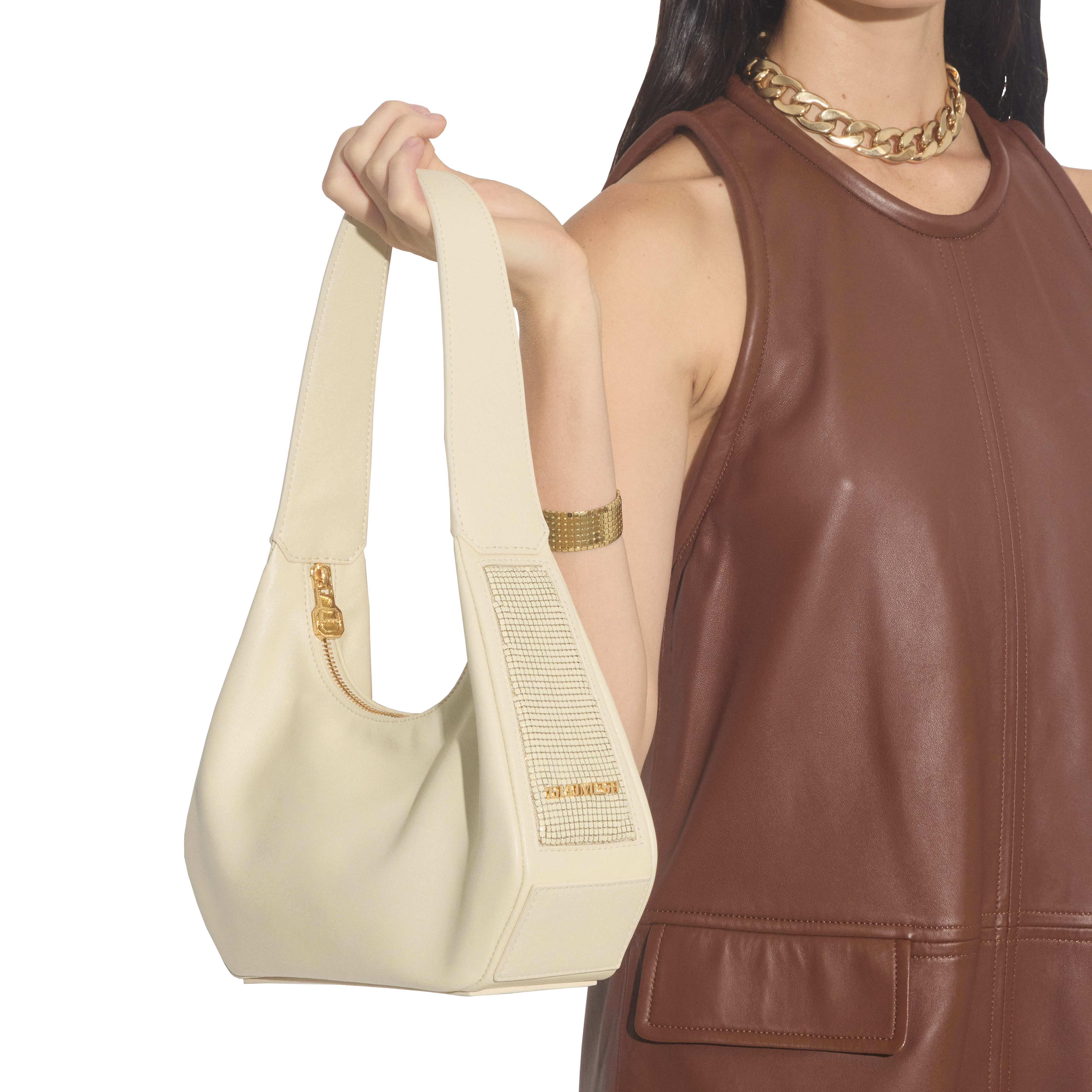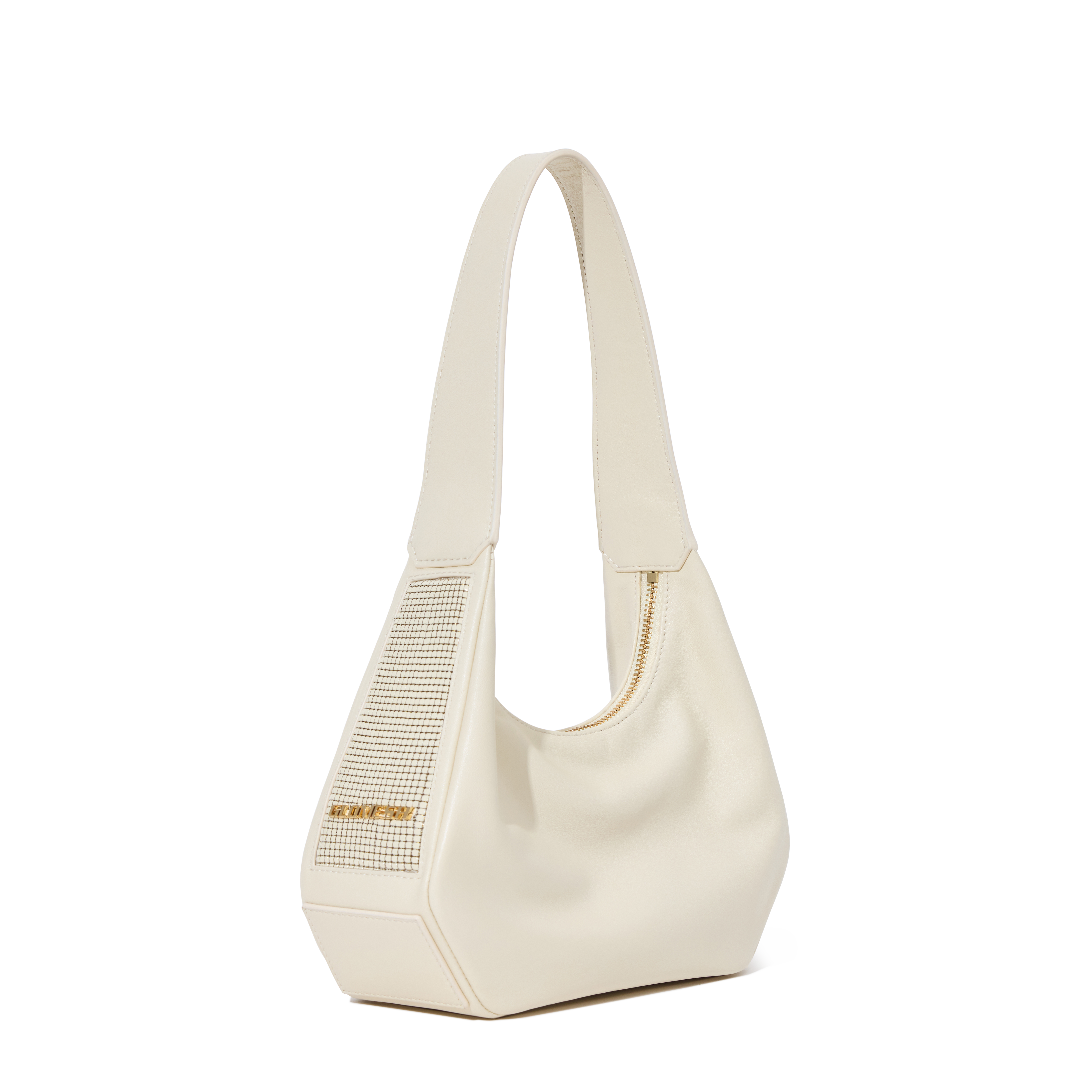 - Embellished with Glomesh's trademark pure brass mesh.