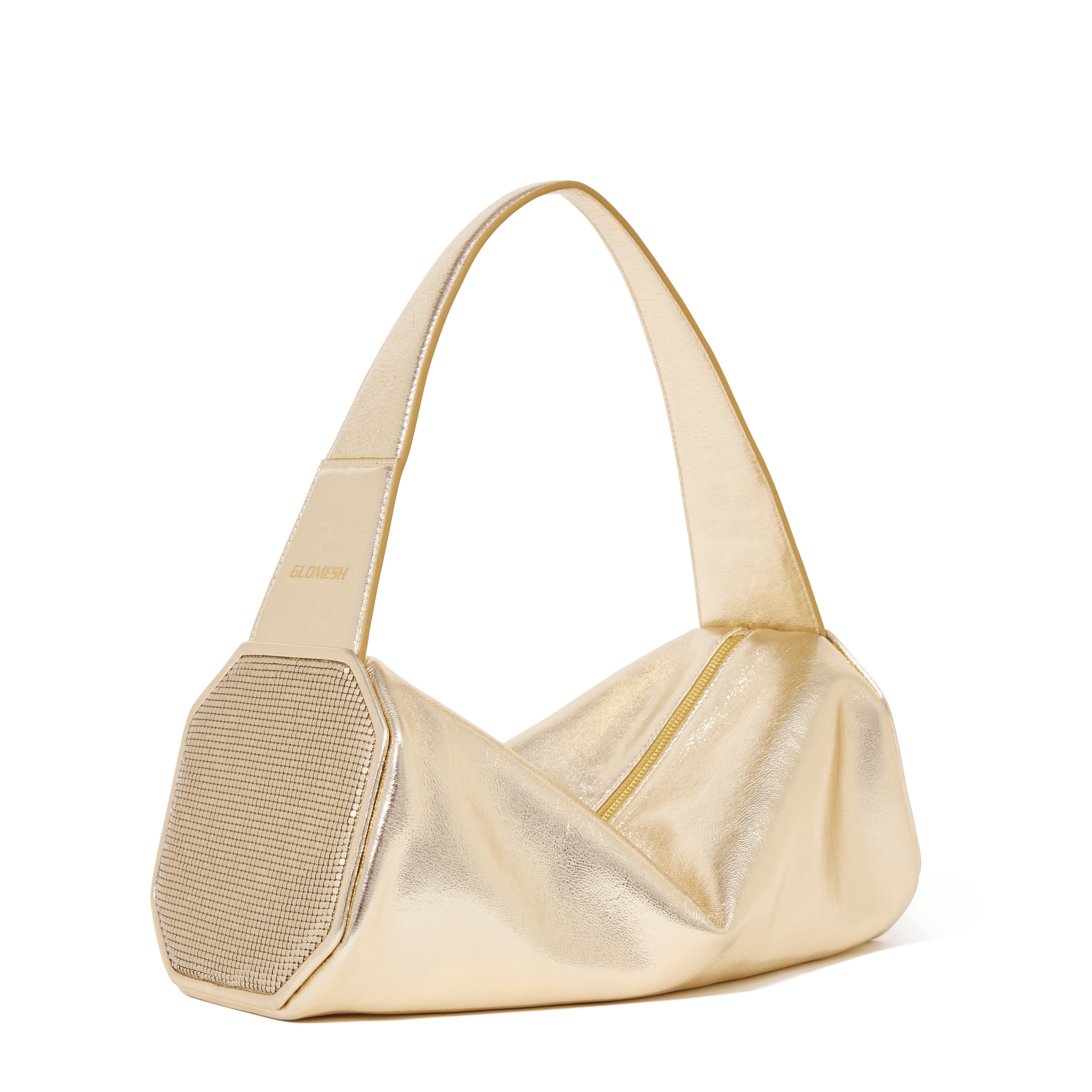 - Embellished with Glomesh's trademark pure brass mesh.